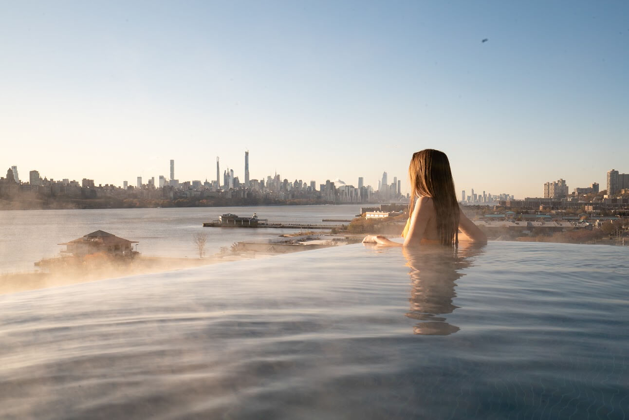 Enjoy a private, men’s only outside hot bath with views of the George Washington Bridge